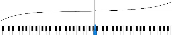 Pour obtenir un étirement le plus finement gradué et calculé avec précision, j’utilise un logiciel spécialisé d’accordage. Si, à l’inverse, des instruments sont accordés de façon linéaire et avec seulement quelques paliers horizontaux (comme certains accordeurs le font), des octaves impures apparaissent surtout aux transitions. L’ensemble de l’instrument peut alors paraître déséquilibré sur le plan sonore. Un piano accordé le long de la courbe d’accord dans cette technique d’accordage de pianos sonne harmonieux et pur.